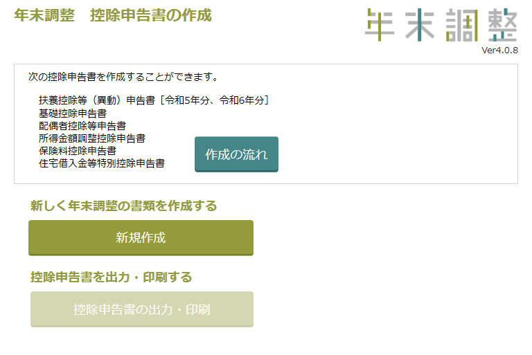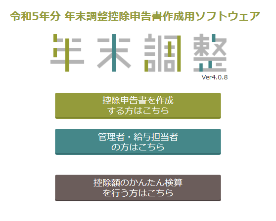 国税庁が提供する「年末調整控除申告書作成用ソフトウェア」(以下「年調ソフト」)を利用して、控除申告書データを作成します。