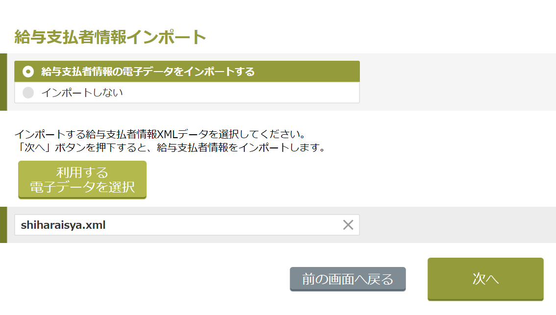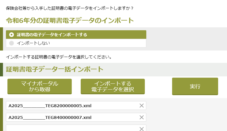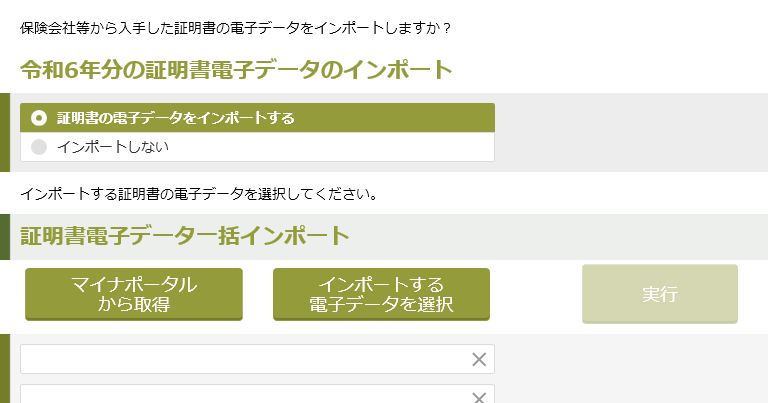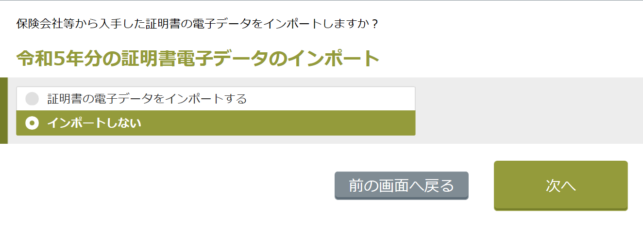 控除証明書を提出する場合は、[証明書の電子データをインポートする]を選択します。