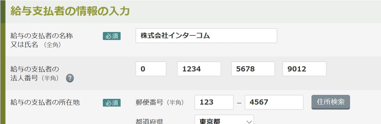 - マイナンバーを会社に提出済みの場合は、[マイナンバーは提供済み]を選択します。