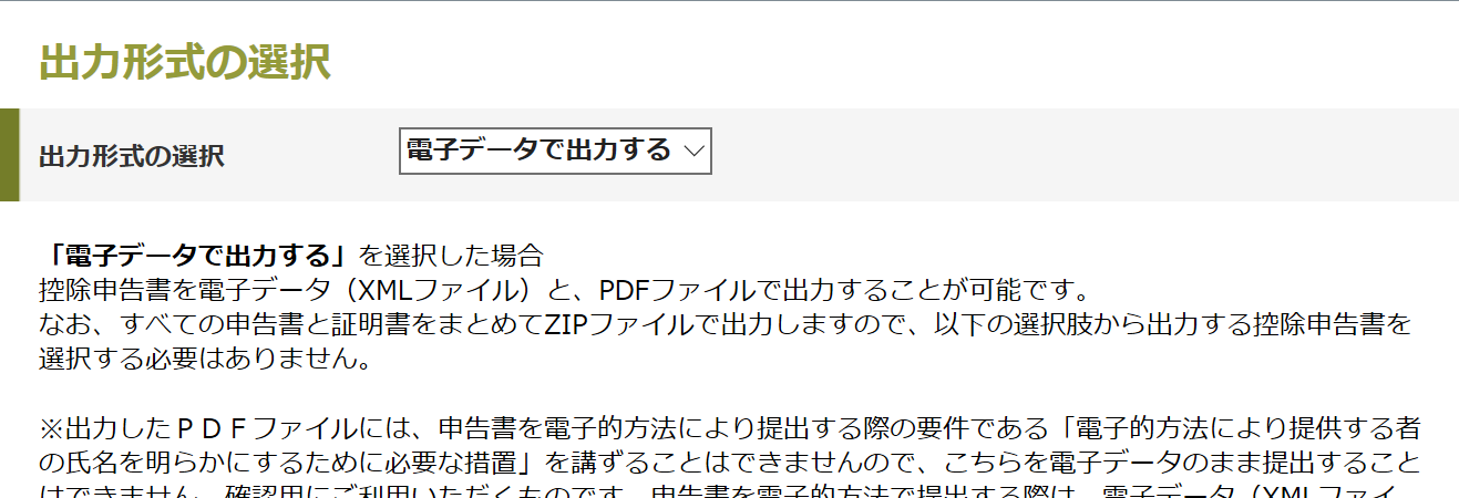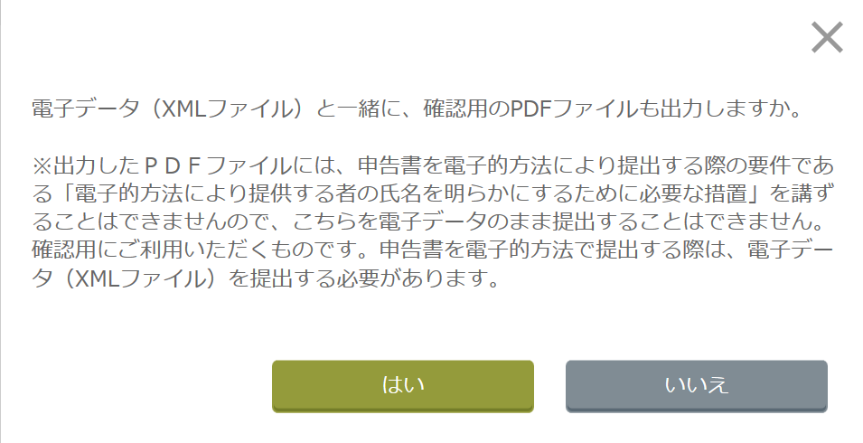 [電子データで出力する]を選択し、[次のステップに進む]ボタンをクリックします。
