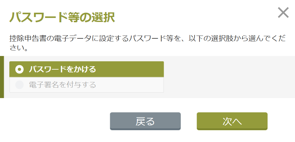 [パスワードをかける]を選択して、[次へ]ボタンをクリックします。