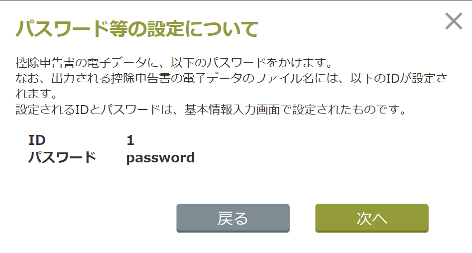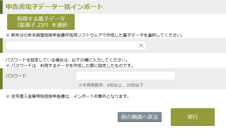 前年の申告書データを作成した際のパスワードを入力する必要があります。