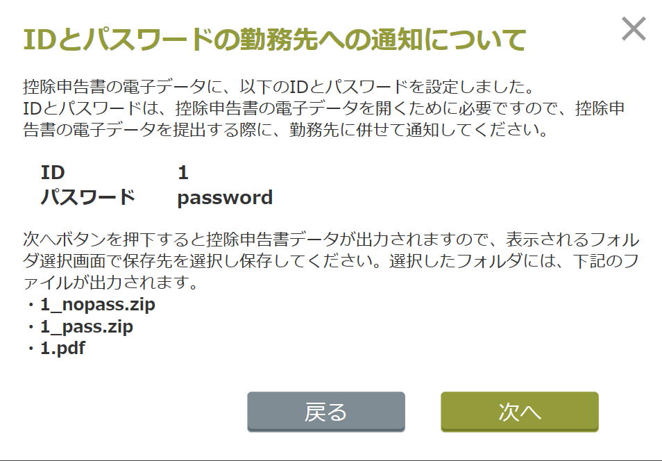 それぞれ、年末調整データの配信を受け取った際にメモしておいた内容と一致しているか確認して、[次へ]ボタンをクリックします。