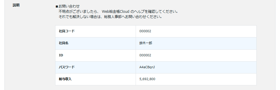 [説明]に記載されている[ID]と[パスワード]、および[給与収入]などその他の項目があれば確認し、メモしておきます。