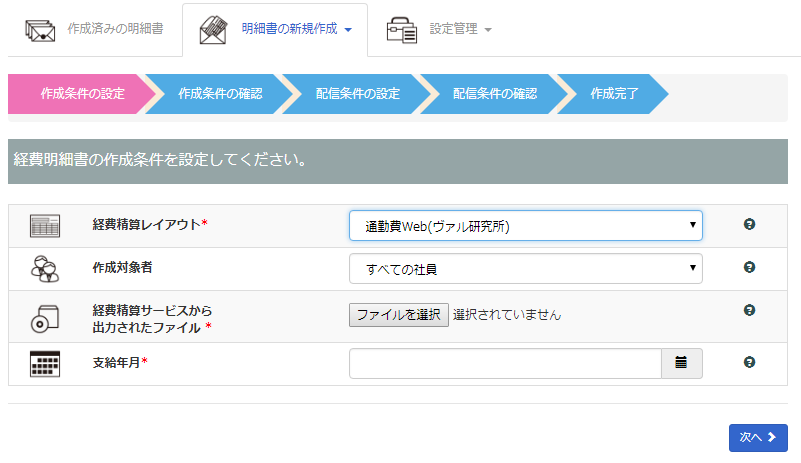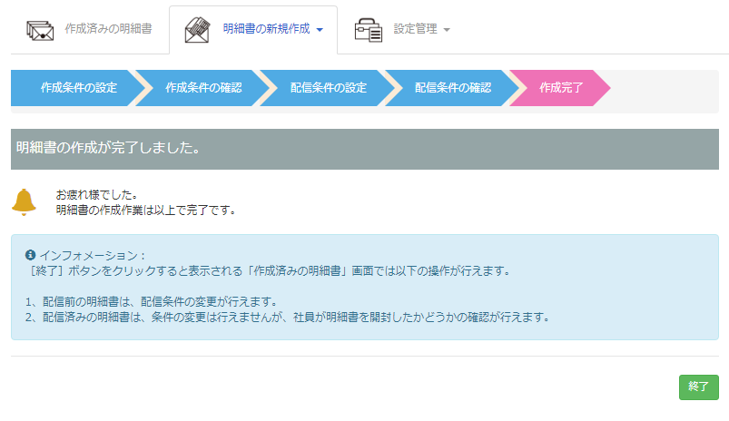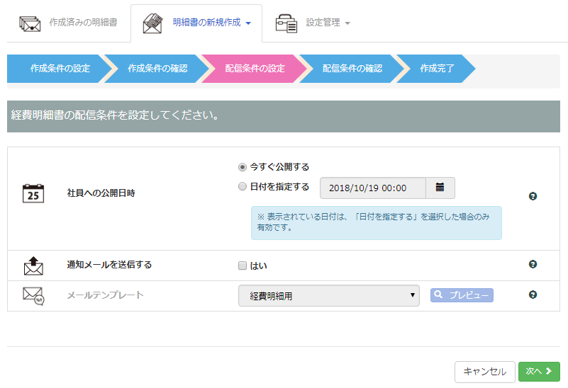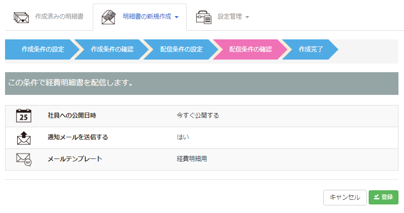 経費明細の配信設定を行った後に、すぐに経費明細を公開します。