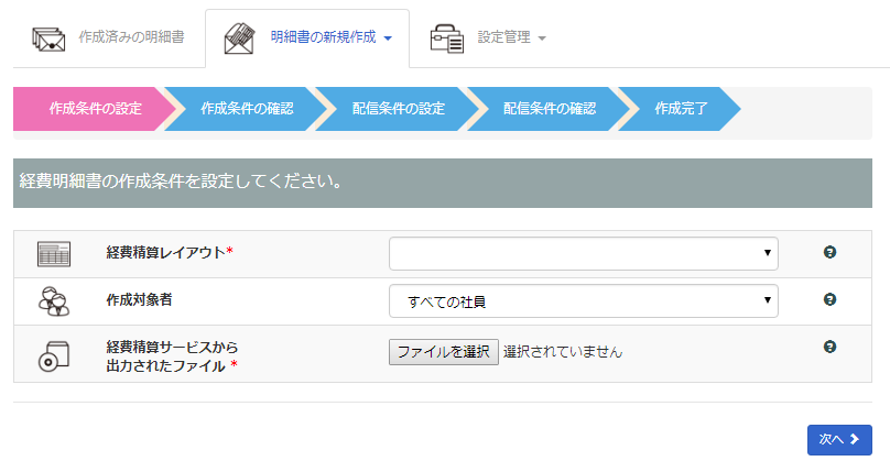 経費明細を作成する経費精算サービスのレイアウトを選択します。