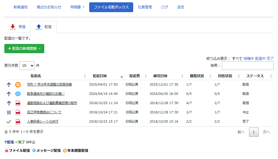 詳しくは、「ファイル宅配ボックスの配信を終了する」を参照してください。