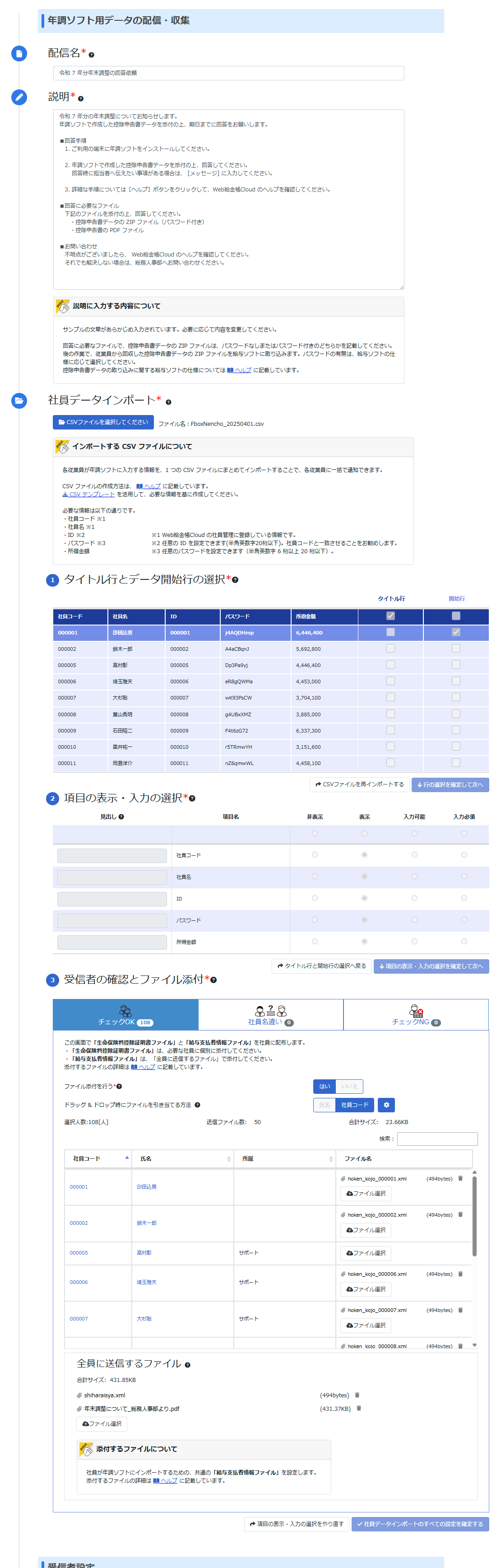 詳しくは、「年末調整用データを配信する」を参照してください。