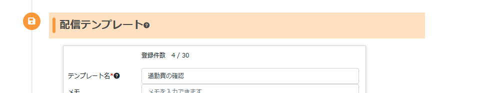 現在のファイル宅配ボックスの設定内容をテンプレートとして保存できます。同じ設定で繰り返し配信する場合は、テンプレートに登録しておくと便利です。テンプレートは30個まで登録できます。