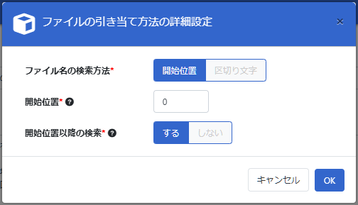 [ファイルの引き当て方法の詳細設定]ダイアログ