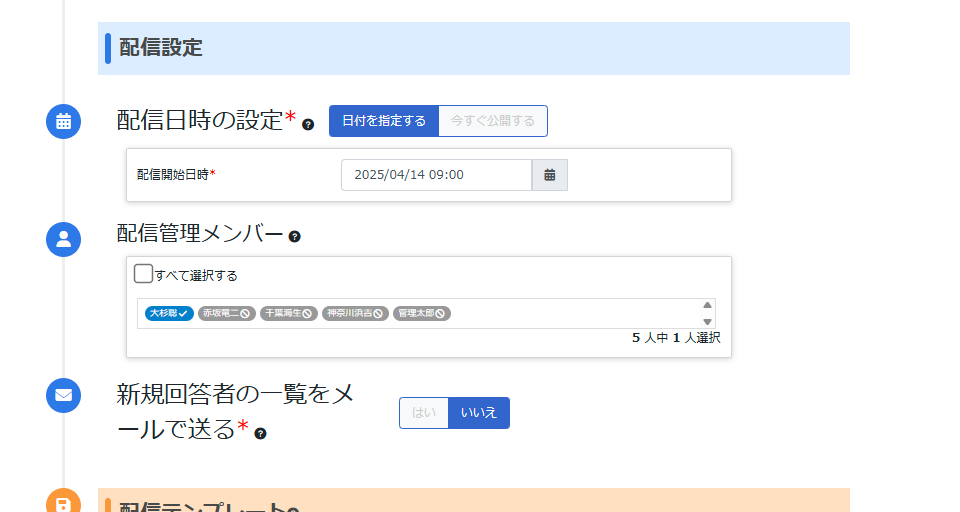 年末調整配信の場合は、常に回答を要求する設定になります。