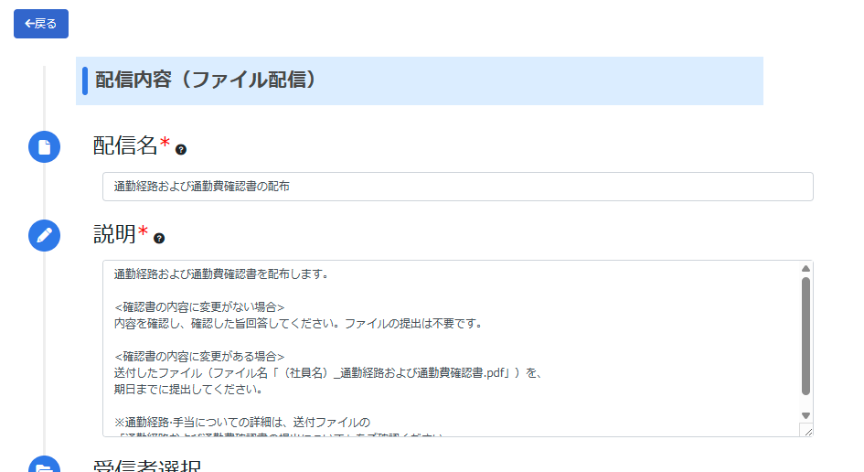 年末調整配信の場合は、常にファイル添付が必須の設定になります。