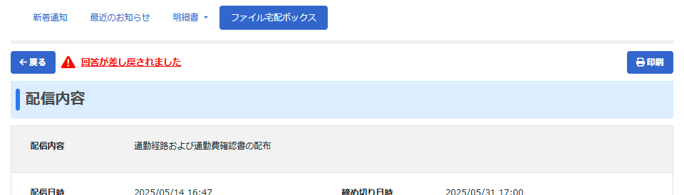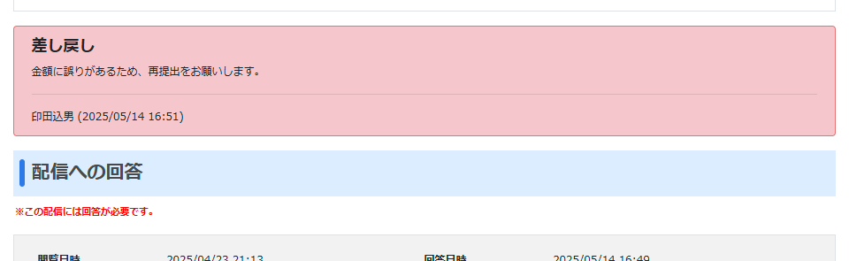 差し戻された場合は、メッセージを確認して必要な対応を行ってから、再び回答します。