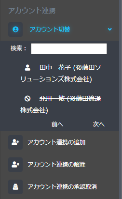 切り替え先のアカウントを追加していない場合は、表示されません。 - [アカウント連携の承認取り消し]