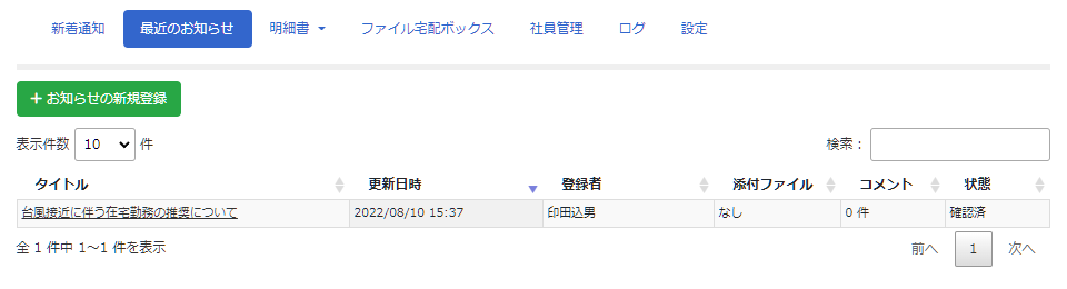 社員がお知らせを閲覧したかどうかを一覧で確認することもできます。