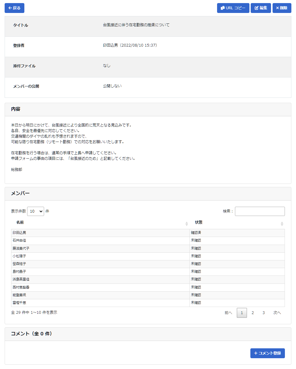 お知らせを閲覧できる社員(メンバー)が表示されます。