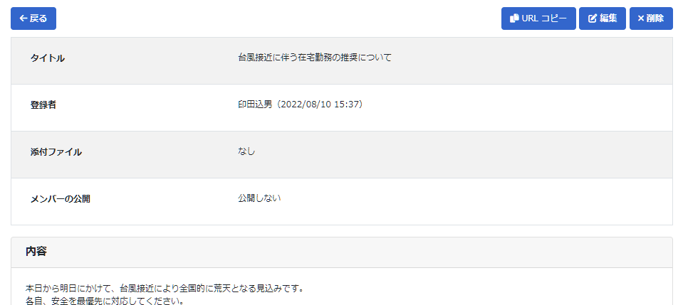 詳しくは、「お知らせの詳細画面の説明」を参照してください。
