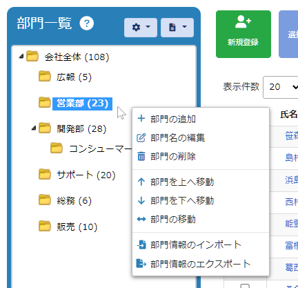 部門を登録するには、個別に登録する方法と、事前に部門情報のテキストファイルを作成して、一括で読み込む(インポートする)方法があります。